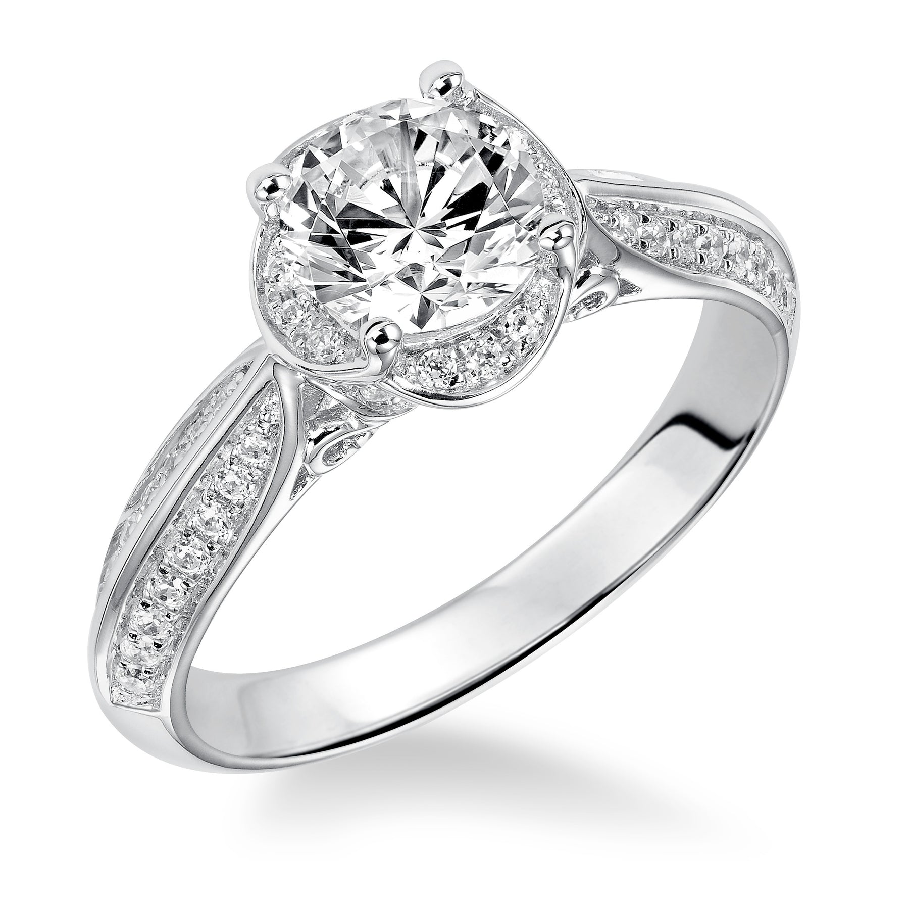 Alluring and romantic, this diamond engagement ring is lovely with its prong set diamond and filigree design details Center stone not included.