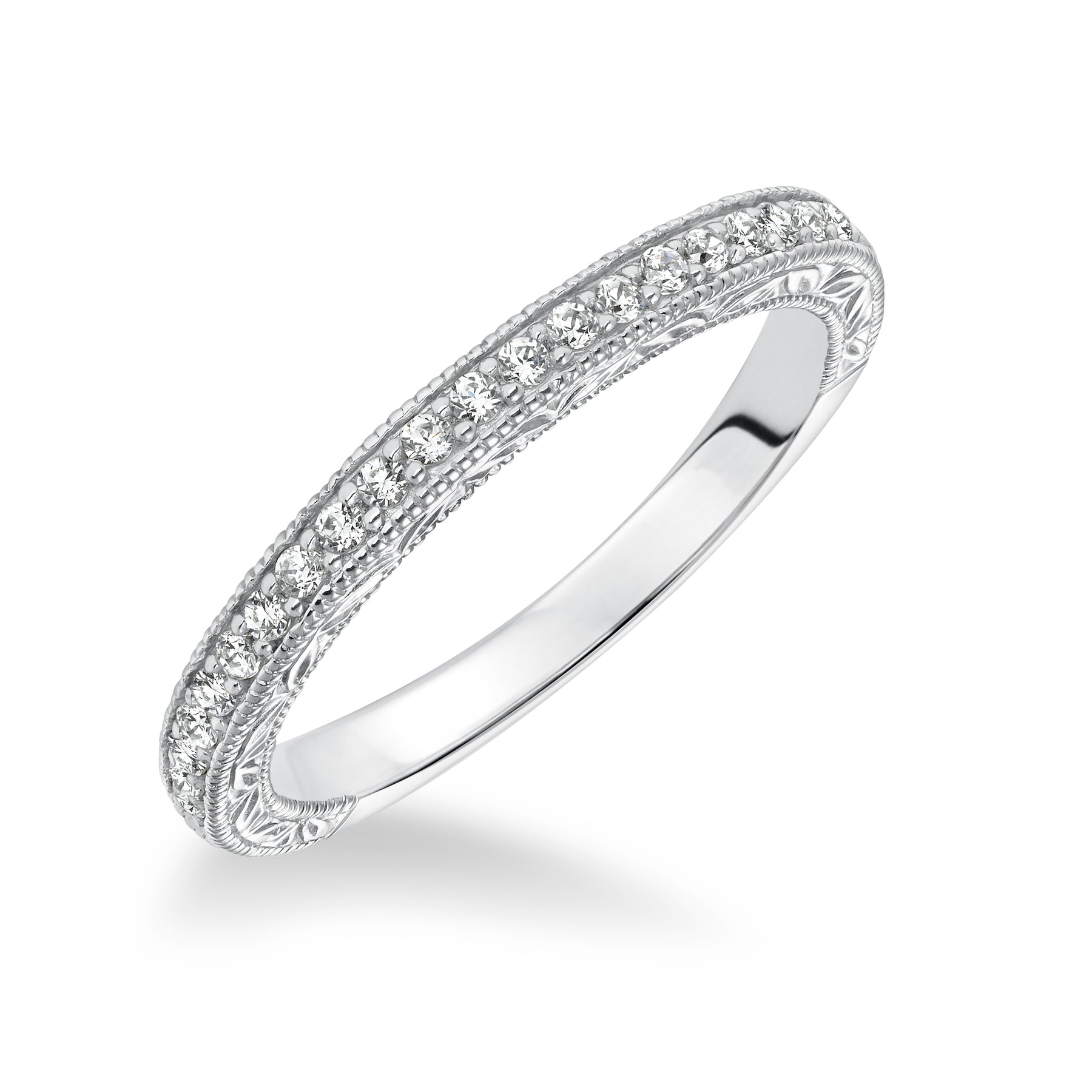 Diamond Engraved and Milgrain Wedding Band