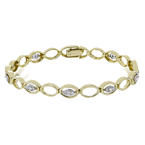 This elegant and modern bracelet features solid yellow gold links and with either luxurious white gold diamond setting. This bracelet is available two tone for a mixed metal look. Available white and rose gold. 14K2T .43D