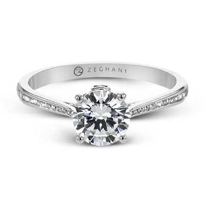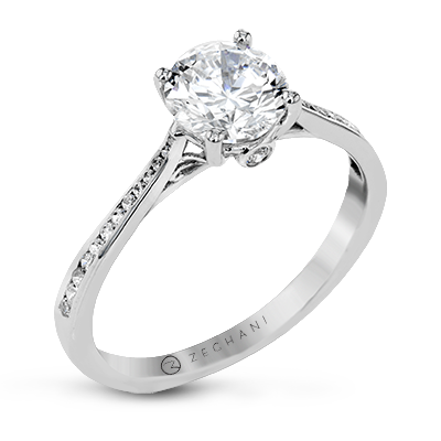 Set in white gold, the alluring nature of this 14k wedding set makes it a perfect addition to our Classic Beauty collection. Center stone not included. Our rings can be designed to fit any center stone.