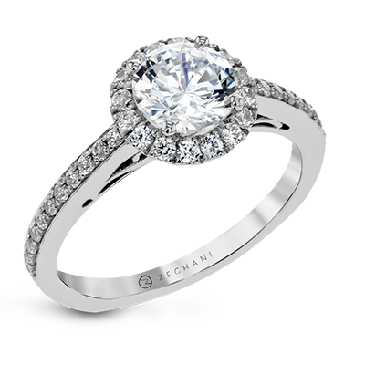 Narrow band ring in 14k white gold coupled with .30ctw of round diamonds that provides a new definition of class and beauty. Center stone not included. Our rings can be designed to fit any center stone.